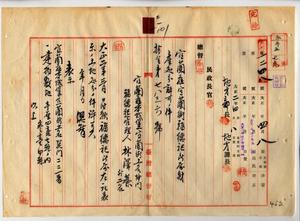 二一 宜蘭庁本城堡宜蘭街土名巽門ノ福徳祠管理人林沢蔡ト信徒惣代ノ劉錫銘・凃殷束星ヨリ神明会所属財産タル福徳祠所属ノ宜蘭庁本城堡宜蘭街土名巽門ノ建物敷地中道路敷地トナリタル土地ニ付キ寄附ヲ願出タル件許可ス(指令第七八三六号)