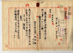 三二 新竹庁苗栗一堡崁頭屋庄ノ万善廟管理人何細満ト信徒総代ノ麦瑞芳・范炳垣ヨリ願出ノ万善廟敷地四厘九毫(一四三坪八合)ヲ苗栗支庁崁頭屋警察官吏派出所建築敷地トシテ寄附スルノ件許可ス(指令第八一一一号)
