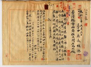 四〇 台中庁長枝徳二ヨリ本島ノ旧慣ニ依ル社寺廟宇等神明会ノ部三界公会所属財産異動報告ノ件