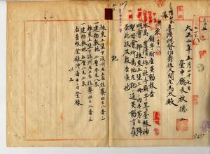 五三 台中庁長枝徳二ヨリ本島ノ旧慣ニ依ル社寺廟宇等台帳神明会ノ部捒東上堡ノ内聖母会所属地捒東上堡下渓州庄土名後藔ノ建物敷地ハ台帳登録洩届出ニ付キ登録ノ件財産異動報告ノ件
