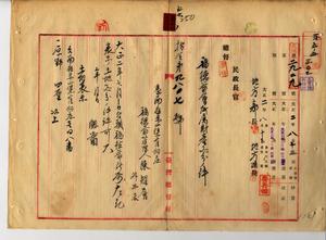五六 台南庁赤山堡官佃庄ノ福徳爺管理人陳耀層ト会員総代ノ陳森浦・陳大廷・陳見成ヨリ出願ノ福徳爺所属地台南庁赤山堡官佃庄ノ原野ヲ六甲公学校官佃分校新築敷地トシテ寄附ニ付キ許可ノ件(指令第九八〇七号)