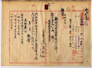 五七 阿緱庁港西中里帰来庄ノ文昌会管理人簡新和ト会員総代ノ鄭煥新・鄭清栄ト公館区長陳従賢ヨリ出願ノ文昌会ハ時勢ノ推移ト共ニ成立ノ本旨ヲ失ヒ祭祀ノ儀典モ殆ド廃絶シ全ク有名無実ノモノト成リタルニヨリ解散スルコトトシ該神明会ノ財産ヲ処分シ阿緱公学校ニ寄附スルノ件許可ス(指令第九八〇九号)