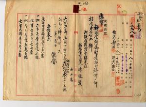 五八 阿緱庁港西中里帰来庄ノ媽祖会管理人陳従賢ト会員総代ノ陳秋白・陳崇二公館区長陳従賢ヨリ出願ノ媽祖会ハ時勢ノ推移ト共ニ成立ノ本旨ヲ失ヒ祭祀ノ儀典モ殆ド廃絶シ全ク有名無実ノモノト相成リタルニヨリ解散スルコトトシ該神明会ノ財産ヲ処分シ阿緱公学校ニ寄附スルノ件許可ス(指令第九八〇八号)