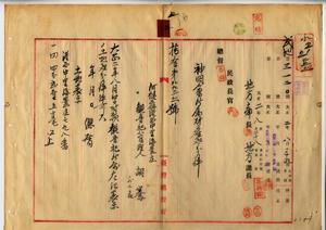 五 阿緱庁長佐藤謙太郎ヨリ阿緱庁港西中里海豊章神明会観音祠管理人胡騫・会員総代鄭煥春・同鄭清栄ニ阿緱区長許宗朝ヨリ観音祠ヲ解散、財産ヲ処分シ阿緱公学校ニ寄附方願出ノ件許可ス(指令第九九三六号)