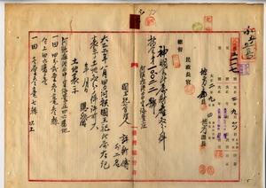 六 阿緱庁長佐藤謙太郎ヨリ阿緱庁港西中里海豊庄神明会国王祠管理人許新伝・会員総代鄭煥彩・同鄭煥春ニ阿緱区長許宗朝ヨリ国王祠ヲ解散、財産ヲ処分シ阿緱公学校ニ寄附願ノ件許可ス(指令第一〇〇二二号)