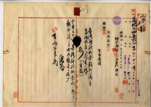 一一 台湾総督佐久間左馬太ヨリ宮内大臣ニ台湾神社例祭幣帛神饌料金百円領収及例祭執行済報告ノ件