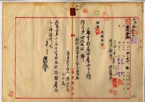 一二 新竹庁長家永泰吉郎ヨリ新竹庁苗栗一堡双草湖庄万善祠管理人孫栄昌・派下総代彭振興・同楊阿漢ヨリ三叉河公学校ニ金百円ヲ寄附スルトノ財産処分ノ件ヲ許可ス(指令第一〇六七四号)