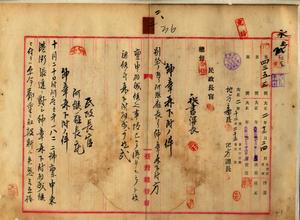 二 阿緱庁港東中里東港街張達ヨリ紳章番号第七二四号ノ紳章ヲ大正二年一一月二九日ノ阿緱街ニ於ケル民政長官歓迎ノ混雑ノ際ニ紛失シタルニヨリ再下付ヲ願出タルニ付キ已ムヲ得サルモノト認メ再下付スルノ件
