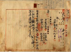 八 明治四二年一〇月府令第六四号台湾刑事令施行規則中ヲ改正スルノ件(大正二年五月六日)並ニ同府令ニヨリ即決官署ニ於テ言渡シタル罰金、科料及追徴金ノ滞納処分ニ関シテハ収入官吏タル庁属、警部又ハ警部補ヲシテ之ヲ行ハシメラル様各庁長ヘ通達ノ件(府令第四九号)
