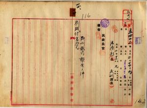 一四 匪徒刑罰令違反被告事件死刑囚傅清鳳(新竹庁苗栗一堡田藔庄一九七番地・農・三三年)ニ付キ大正二年一二月四日臨時法院ニ於テ死刑ヲ言渡サレタルニ依リ同日苗栗臨時法院検察官ヨリ死刑ノ執行方ノ具申電報アリタルニ由リ翌一二月五日ヲ以テ判決ノ通リ執行スヘシトノ命令電報ヲ発スル件並ニ覆審法院検察官長手島兵次郎ヨリ一二月八日ニ台北監獄ニ於テ死刑ヲ執行シタル旨報告(一二月八日付)ノ件