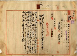 一九 地方法院及ヒ其出張所管内登記所ニ於テハ土地、建物、船舶、商業ト云フ如キ登記種類ヲ制限セス法人及組合等ノ登記モ総テ法院書記ヲシテ取扱ハシムルノ可ナルヲ認ムルヲ以テ明治三八年六月府令第四二号中「土地、建物、船舶、商業ノ」ヲ削ルノ件(府令第一八号)