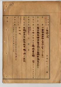 六 疾病ニ因リ依願退職シタル元台中監獄看守藤崎豊次郎ヨリ一時金ノ請求アリタルニ付キ看守退職一時金証書下付ノ件