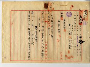 一四 宜蘭庁紅水溝区長江錦華・清水溝区長郭奠邦・羅東区長陳純精・二結区長張俶南ヨリ羅東公学校冬瓜山分校ハ就学児童数増加シタルノミナラズ将来益々増加ノ見込ミアリタルニヨリ就学年限六箇年ノ独立公学校ニ変更致シ度トノ出願ニ依リ宜蘭庁羅東区・二結区・紅水溝区・清水溝区ヲ設立区域トナス冬瓜山公学校ノ設立ヲ認可(告示第七八号)シ宜蘭庁紅水溝区長江錦華外三名ヘ冬瓜山分校変更認可指令ノ件(指令第七六四三号)