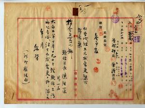 一三 新竹庁頭份区長陳維藻・三湾区長鄧火興ヨリ従来新竹庁三湾区内竹南一堡大河底・大坪林庄・内湾庄・永和山庄ハ頭份公学校設立区域ニ属シタルモ児童ノ入学上不都合アルヲ以テ設立区域変更ニ付頭份公学校及ヒ三湾公学校所属財産変更ニ対シ頭份公学校学務委員劉滄・張旺興・廖俊心・林啓興・区長陳維藻・林臺・饒鑑麟ト三湾公学校学務委員頼双伝・廖清河・区長鄧火興・温算・張細石・張昇華連署ノ協定書ヲ添ヘテ出願ニ対シ指令第一〇九四七号ヲ以テ認可シ告示第一九〇号ヲ以テ大正三年四月一日ヨリ設立区域ヲ頭份公学校ハ頭份区ヲ三湾公学校ハ三湾区・南庄区・内員林庄・大南埔庄ニ変更スルノ件認可ス