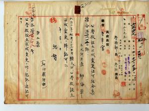 一四 新竹庁三叉河区長邸海華ヨリ今般庁管轄区域変更ニ伴ヒ台中庁鯉魚潭庄ガ新竹庁三叉河支庁三叉河区ヘ転入サレタルニヨリ苗栗一堡鯉魚潭庄ハ新竹庁三叉河区ヘ編入セラレタルニヨリ児童ノ就学上三叉河公学校ニ編入スルノガ適当ナリトシテ設立区域ヲ変更スルノ稟申ニ付指令第一一一五〇号ヲ以テ設立区域変更ヲ認可シ告示第一九八号ヲ以テ新竹庁三叉河公学校ノ設立区域中ニ三叉河区ニ属シタル鯉魚潭庄ヲ加フルヲ認可ス
