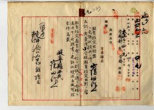 九 岐阜県小学校本科正教員免許状ヲ有スル台北庁台北第一尋常高等小学校雇窪田作一(本籍地岐阜県揖斐郡小島村大字岡・明治一七年一二月一五日生・岐阜県師範学校卒)ヨリ尋常小学校本科正教員無試験検定出願ニ付キ教員免許状授与ノ件