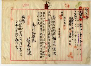 七 香川県教員免許状、師範学校中学校高等女学校修身科・農業科、師範学校高等女学校教育科、師範学校中学校博物科、高等女学校理科ノ内動物・植物・鉱物・生理・衛生ノ教員免許状及ヒ岡山県教員免許状ヲ有スル奈良女子高等師範学校訓導佐々木信次(本籍地香川県木田郡下高岡村・明治一六年一月一日生・広島高等師範学校本科博物学部卒)ヨリ小学校本科正教員無試験検定出願ニ付キ免許状授与ノ件