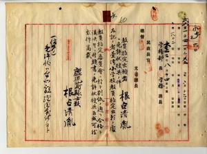 六 鹿児島県小学校本科正教員免許状ヲ有スル元鹿児島県鹿児島郡中山尋常高等小学校訓導根占清胤(本籍地鹿児島県姶良郡加治木町反土・明治二四年八月一六日生・鹿児島県師範学校本科第二部卒)ヨリ尋常小学校本科正教員無試験検定出願ニ付キ免許状授与ノ件