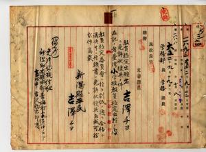 一 台湾小学校教員無試験検定出願ノ吉沢チヨ(新潟県小学校本科正教員免許状・新潟県西頭城郡青海小学校訓導・新潟県高田市新田町・明治二五年三月二三日生・高田高等女学校及ヒ長岡女子師範二部二ヶ年課程卒業)ニ対シ教育科ニ関スル試験ヲ施行スルコトトナシタルニヨリ八月二九日付ニテ試験実施依頼ノ新潟県ニ試験施行依頼状ト試験問題ヲ送付シタルモ同県ニ右書面致着シタルハ九月六日ナルニヨリ同県ハ期日切迫(試験日時九月八日午前八時ヨリ一〇時迄)ニ付キ吉沢チヨヘ電信ニテ出頭方通知シタルモ本人出頭致セザルニ依リ其ノ旨ヲ記シタル書面「試験問題返戻ノ件」(大正二年九月八日付台湾総督府民政長官内田嘉吉宛新潟県知事安藤謙介通知書)ヲ添付シ試験問題返戻サレタル為メ改メテ取扱方ナシ九月一七日付ヲ以テ教員検定委員会ニ於テ吉沢チヨニ付テハ履歴ニ依リ尋常小学校本科正教員合格ト議決シタルヲ以テ其ノ決定ヲ認メ同免許状ヲ授与ス