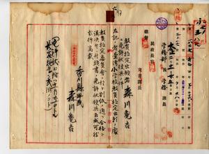六 台湾小学校教員無試験検定出願ノ森川亀吉(香川県小学校本科正教員免許状及ヒ文部省小学校本科正教員普通免許状・香川県女子師範学校訓導・香川県三豊郡観音寺町大字観音寺甲・明治七年一一月一日生・香川県尋常師範学校本科卒業)ニ対シ教員検定委員会ニ於テ履歴ニ依リ検定シ合格ト議決シタルヲ以テ小学校本科正教員ノ免許状ヲ授与ス