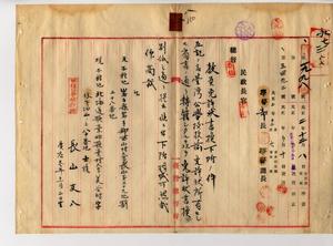 八 台湾公学校教諭牛罵頭公学校勤務岩手県士族長山友八ヨリ転籍シタルヲ以テ教員免許状書換願出ニ付キ甲種公学校教諭免許状書換下付ノ件