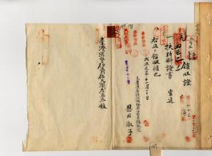 二八 故台湾小学校教諭恩田嘉喜穂孤児恩田淑子ヨリ今迄遺族扶助料ヲ受取リタル姉ノ恩田秀子ハ大正元年八月一日ヲ以テ満二〇歳ニ達シタルヲ以テ扶助料ヲ六女ノ淑子へ転給方請求ニ付キ扶助料証書下付並ニ領収証受領ノ件