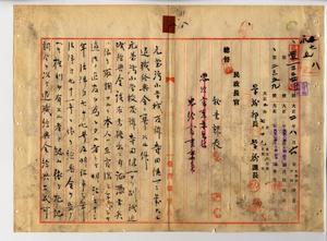 八 罹病ニヨリ依願退職シタル元台北第三尋常高等小学校勤務台湾小学校教諭兼台湾総督府国語学校教諭寺田健一ヨリ出願ノ台湾小学校教諭退職給与金支給ノ件