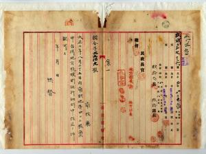 四 南投庁長石橋亨ヨリ稟申ノ地方税規則細則中改正ノ義ニ付キ認可ノ件(指令第九九四九号)