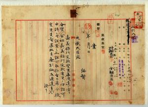 八 合資会社嘉義銀行頭取林寛敏ヨリ同行定款変更認可申請ノ定款第九条中ノ無限責任社員打猫北堡大莆林街薛果堂ハ総社員ノ同意ヲ経テ游添成ヘ出資金ヲ譲渡シ減資、有限責任社員嘉義街王子景ハ無限責任社員ノ同意ヲ経テ廖煥章ヘ出資金ヲ譲渡シ減資、有限責任社員斗六堡斗六街廖煥章ハ無限責任社員ノ同意ヲ経テ有限責任社員王子景ヨリ出資ヲ譲受ケ増資、有限責任社員大槺榔西堡太保庄王徳有ハ無限責任社員ノ同意ヲ経テ社員呉開興ヘ出資金ヲ譲渡シテ退社、有限責任社員嘉義東堡頂埔庄李乞食ハ無限責任社員ノ同意ヲ経テ社員黄献西ヘ譲渡シテ退社、有限責任社員打猫南堡双渓口庄詹万主ハ無限責任社員ノ同意ヲ経テ社員詹俊英ヘ出資金ヲ譲渡シテ退社、有限責任社員嘉義街蕭必■(土+爽)ハ無限責任社員ノ同意ヲ経テ社員游添成ヘ出資金ヲ譲渡シテ退社、有限責任社員嘉義街黄献西ハ無限責任社員ノ同意ヲ経テ李乞食ヨリ出資ヲ譲受ケ入社、有限責任社員嘉義街呉開興ハ無限責任社員ノ同意ヲ経テ王徳有ヨリ出資金ヲ譲受ケ入社、有限責任社員打猫南堡双渓口庄詹俊英ハ無限責任社員ノ同意ヲ経テ詹万主ヨリ出資金ヲ譲受ケ入社、有限責任社員台中街游添成ハ無限責任社員ノ同意ヲ経テ無限責任社員薛果堂ノ出資金ト有限責任社員蕭必■(土+爽)ノ出資金ヲ譲受ケ入社、有限責任社員嘉義街荘両儀ハ無限責任社員ノ同意ヲ経テ荘丙儀名義ナリシ処戸籍面ト相違セルヲ以テ荘両儀ト訂正、有限責任社員嘉義東堡頂埔庄李乞食ハ有限責任社員李添祝死亡ニ付キ無限責任社員ノ同意ヲ経テ持分全部ヲ相続継承、有限責任社員打猫南堡双渓口庄詹万主ハ有限責任社員詹滕死亡ニ付キ無限責任社員ノ同意ヲ経テ持分全部ヲ相続継承、有限責任社員嘉義街陳作宜ハ有限責任社員陳傑昌死亡ニ付キ無限責任社員ノ同意ヲ経テ持分全部ヲ相続継承ハ指令第六一三五号ヲ以テ認可ノ旨同行林頭取ヨリ、薛果堂ト王子景ノ減資、廖煥章ノ増資、李乞食・詹万主・陳作宜ノ継承、王徳有・李乞食・詹万主・蕭必■(土+爽)ノ退社、黄献西・呉開興・詹俊英・游添成ノ入社、林寛敏ノ住所ト荘丙儀ノ氏名更正変更ニ付キ台湾総督佐久間左馬太ヨリ大蔵大臣高橋是清ヘ進達ノ件