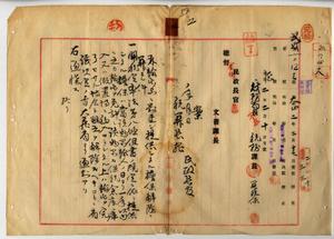 五 大蔵省関税局長山崎四男六ヨリ台湾総督府財務局長中川友次郎ヘ関税定率法第八条但書規定ニ依リ提供シタル担保ハ当該物品輸入ノ日ヨリ一年以内ニ之カ輸出ヲ免許シ該物品カ保税倉庫ニ庫入又ハ仮置場ニ移入セラレタル上ハ輸出ヲ完了セサル場合ト雖モ之ヲ解除スル旨通牒アリタルニヨリ民政長官ヨリ税関長ヘ通牒ノ件