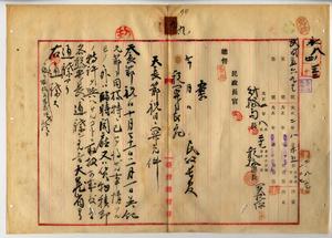 九 大蔵省主税局長菅原通敬ヨリ台湾総督府財務局長ヘ天長節(一〇月三一日)ハ祝日ナルヲ以テ特ニ已ムヲ得サル事情アルモノノ外ハ臨時開庁又ハ貨物積卸ノ特許ヲ与ヘサル様取扱ヲナス様通牒アリタルニヨリ民政長官ヨリ税関長ヘ通牒ノ件