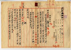 二一 阿里山作業所長事務取扱高田元治郎ヨリ木材売払代金延納ニ関スル勅令公布ニ伴ヒ担保トシテ提供スル有価証券ヲ公示スルノ件(府令第八九号)並ニ指定有価証券追加ノ件