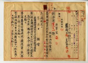 五 阿里山作業所長事務取扱高田元治郎ヨリ同作業所ノ施費規程ハ鉄道部旅費規程ヲ準用シタル処当所鉄道ニ付テハ鉄道部ノ夫レト稍趣ヲ異ニシ且ツ林業従事者ノ如キ業務ノ性質ヲ異ニスルモノアリテ権衡ヲ失スルノ嫌アルノミナラス経費支持困難ノ事情モアル為メ別ニ規程ヲ設クルノ必要アルトノ禀申ヲ認メ台湾総督府阿里山作業所旅費規程制定ノ件(訓令第一八一号)