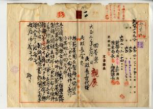 一二 台湾総督府民政長官内田嘉吉ヨリ民政長官代理高田元治郎ヘ台湾製糖会社ニ対シ後壁林附近ノ地所ヲ模範蔗園ト為シ製糖工場ヲ設立スル件許可シタル際ノ命令条件ノ遂行状況ニ付キ照会並ニ回答ノ件