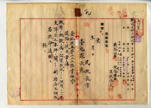 一九 台北庁長井村大吉ヨリ士林金包里道中芝蘭一堡林仔口庄内ノ一部ハ路幅狭隘ニシテ交通上拡築ノ必要有ルニヨリ官租地ヲ公道敷地トシテ使用スルノ件支障無キニ付キ其ノ旨通達ス