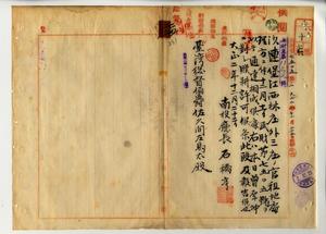 二五 台湾総督府専売局長山脇春樹ヨリ稟申アリタル南投庁林杞埔支庁管内江西林庄・大坑庄・下崁庄・福興庄所在官租地六七甲歩ノ使用継続ノ義ニ対シ専売局ト協議ノ結果撤回ヲナスコトトナリタルニ依リ明治四三年一二月二八日指令第六〇一一号ヲ以テ煙草試作場トシテ台湾総督府専売局ニ使用方認可シタル沙連堡江西林庄・大坑庄・下崁庄・鯉魚頭堡福興庄ノ官租地ハ大正二年一二月八日ヲ以テ専売局ニ於テ使用廃止ニ付キ以後ノ利用方法ニ付テ該地ニ於テハ葉煙草栽培ヲ条件トシテ昵耕ヲ許可スルコト及ヒ官用地トナル以前ニ昵耕者曽厚坤ヨリ昵耕ヲ願出テシメタルニヨリ昵耕ヲ許可スルコトヲ南投庁長ヘ通達シタル処南投庁長石橋亨ヨリ処理方ニ付キ報告ノ件