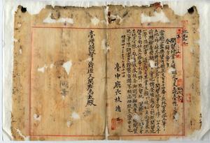 一 台中庁長枝徳二ノ禀申ニ基付ク台中庁ノ開墾地業主権認定・土地台帳登録方・地番訂正方稟申認可ノ件 台中庁明治四二年地押調査証拠書類写綴込(四冊の内二)一-1 台中庁長枝徳二ヨリ明治四三年七月一四日付中財直発方三〇四号ヲ以テ禀申ノ藍興堡内新庄・同堡草湖庄・大肚下堡烏日庄・猫羅堡旧社庄同堡県庄・同堡同安厝庄・同堡下茄荖庄・同堡渓心画庄・捒東上堡新社庄土名復興・同堡石囲墻庄土名石囲墻・同堡新伯公庄土名新伯公・同堡下渓洲庄土名後壁厝・苗栗三堡銅安厝庄・同堡頂後厝仔庄・同堡新庄仔庄・同堡磁磘庄・同堡五里牌庄・同堡日南社庄・同堡日南庄・大肚上堡高美庄・二林上堡浸水庄土名浸水・同庄土名朴鼎金・同堡田中央庄・捒東下堡蔴糍庄・大肚下堡王田庄・線東堡南門口庄・土名南門口・武東堡内湾庄・同堡許墘藔庄・東螺東堡大坵園庄・東螺西堡北斗庄・同堡渓墘厝庄・馬芝堡三省庄ノ一二五筆ノ土地ニ付キ開墾地業主権認定方及ヒ土地台帳登録方認可ノ件(指令第二三〇号)一-2 台中庁長枝徳二ヨリ明治四三年三月一四日付中財直発第六八号及ヒ稟申ニ対スル指令第二三一号並ニ其ノ指令ニ係ル禀申書中地番誤謬訂正ニ付キ認可ス(指令第八九号)一-3 明治四二年地押調査 二林下堡ノ旧趙甲庄・二林庄・草湖庄、深耕堡下牛稠庄、二林上堡万興庄ノ証拠書類写 台中庁(五冊之内其壱)