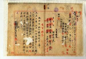 三 大正二年七月一七日カラ一九日ノ暴風雨水害罹災者救恤御下賜金四千円ヲ台北・宜蘭・桃園・新竹・台中・南投・嘉義・台南・阿緱ノ各庁長ヘ送付ノ件