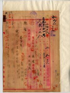 五 台北八甲街郵便局長斎木三吉ノ申請ニヨリ大正二年九月一日ヨリ台北八甲街郵便局ニ於テ電報ノ発信取次事務ヲ取扱ハシムルノ件(告示第一四五号)