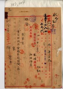 四四 花蓮港郵便局長斉藤庄治ノ要請ニヨリ鳳林電信取扱所ニ於ケル電報取扱時間ヲ改正スルノ件(訓令第二四一号)