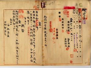 五九 大正元年一二月告示第七七号ヲ以テ流失ノ旨告示シタル淡水港口北閂洲浮標ハ旧位置ニ碇置シタル件(告示第九五号)