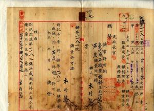 七 木付篤ヨリ出願ノ台北庁石碇堡横科庄及大加蚋堡南港旧庄ノ内ノ石炭採掘ニ付キ鉱第一一八一号鉱区図ノ区域ニ於テ石炭ノ採掘ヲ許可スルノ件