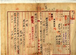 二五 荒井泰治ト賀田金三郎ヨリ願出タル明治四〇年一月一八日許可鉱第八一一号台北庁石碇堡四脚亭庄外三庄地内石炭鉱区ノ鉱業権ヲ荒井泰治ヨリ賀田金三郎ヘ譲渡スルノ件許可ス(指令第九三一八号)