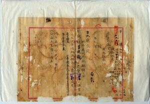一 黄進徳ヨリ出願ノ台北庁石碇堡友蚋庄土名港口・五堵庄土名下陂・郷長厝庄土名郷長厝・北港庄土名北港口・叭嗹港庄土名叭嗹港口ノ内石炭鉱採掘ニ付キ鉱第一二一号鉱区図ノ区域ニ於テ石炭ノ採掘ヲ許可ス[原本破損のため、起案文書に係る情報は不明。]
