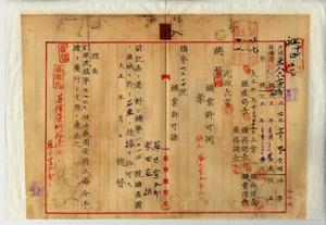 八 辰巳宗太郎・柴田定雄ノ願出タル台北庁石碇堡三爪仔庄土名員山仔・蛇仔形地内ニ於テ石炭採掘権ニ付キ鉱第一二一四号鉱区図ノ区域に於テ石炭ノ採掘ヲ許可ス