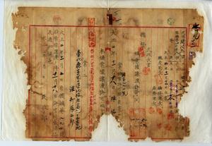 一 旧鉱業人埼玉県比企郡高坂村大字巌殿・台北庁芝蘭二堡北投庄ノ渡部辰五郎ガ所有スル明治四一年七月一四日許可鉱第八九四号台北庁芝蘭一堡草山庄土名冷水坑ノ硫黄鉱区ヲ新鉱業人台北庁芝蘭二堡北投庄ノ陳振栄ヘ譲渡シタルニ付キ大正二年一一月一八日ヲ以テ鉱業権譲渡ヲ許可ス(指令第[破損]号)