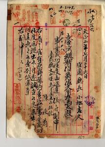 一 台北庁文山区烏月庄土名旺躭ノ陳秋菊ヨリ届出ノ宜蘭庁管内蕃地金瓜・渓沿岸金瓜・三箇所ノ原野開墾ニ付キ官有原野予約売渡地事業成功程度届ニ対シ宜蘭庁長小松吉ヨリ進達ノ件一-一 明治三四年五月三〇日付ヲ以テ台北県文山堡楓仔林街陳秋菊ヨリハ台北県文山堡金瓜・渓ノ沿岸蕃地土名金瓜藔・亀窟猪漕坑・九芎根ノ官有森林原野予約払下願出ヲ、台北県文山堡楓仔林街陳捷陞ヨリハ台北県文山堡金瓜・渓沿岸蕃地土名■(金+鼎)底屋・南埔・猪漕坑・焼仔坑・九芎根ノ内官有森林原野予約払下ノ願出ヲ為シ来ルモ両出願トモ何レモ田畑開墾経営ヲナスモノニシテ設計及起業方法等穏当ナルモノト認メラレ且ツ国土保安上モ差支ナキモノナルノミナラス両人等ハ該地方ニ於テ著名ノ匪魁ナリシモ明治三一年帰順以来正業ニ服シ現ニ製脳業ニ従事致居リ今ヤ旧部下ノ窮民ニ正業ヲ与フル手段トシテ出願シタルモノニ付キ特別ノ詮議ヲ以テ彼等ノ願意御聴許相成候様致度トノ台北県知事村上義雄ノ上申モアリ相当ノ条件ヲ付シ許可スベキトシ陳秋菊ニハ指令第一八二六号ヲ以テ又陳捷陞ヘハ指令第一八二七号ヲ以テ何レモ官有森林原野予約払下ノ件ヲ許可ス一-二 台北県技手日野荒太郎ヨリ陳秋菊ト陳捷陞ヨリ出願ニ係ル予約開墾売下地実地引渡立会ニ付キ台北県知事村上義雄ヘ復命ノ件一-三 元台北県ヨリ引継タル深坑庁管内陳秋菊及ヒ陳捷陞ノ予約払下地引渡ノ件ニ付キ殖産局長ヨリ深坑庁長ヘ照会ノ件一-四 提出ノ予約払下指令書訂正願ニ付キ許可並ニ両人ヨリ提出ノ請書ニ付キ深坑庁長丹野英清ヨリ回送ノ件一-五 陳秋菊ト陳捷陞ヨリ提出ノ予約売渡地ニ係ル明治三六年及同三七年開墾成功届ノ件一-六 深坑庁文山堡楓仔林街(地方行政組織変更による地名変更)ノ陳秋菊ト陳捷陞ヨリ「前年届出成功地積ノ外三十八年中成功ノモノ無之候」トノ事業成功程度届ニ付キ事情調査方深坑庁長ヘ照会ヲ為シタル処深坑庁長丹野英清ヨリ蕃害ニ付キ佃人等恐懼ヲ抱キ次第ニ退去シタル為メ開墾ニ従事スルモノナク又明治三八年中隘勇線前進以来モ尚移住スルモノナク前途開墾ノ目的相立タサリシカ其後平穏ニシテ危害ナキニ拠リ佃人ガ再ヒ移住シ開墾ニ従事スルモノ多クナリシ旨前途開墾計画ノ訂正願書ヲ調整中ニ付キ殖産局長宮尾舜治ヘ回答ヲ為シタル処事実止ムヲ得ズモノト認メ両人ノ開墾事業設計ヲ変更サスルモノトス一-七 深坑庁文山堡烏月庄土名旺躭陳秋菊ヨリノ深坑庁文山堡金瓜・渓沿岸土名■(金+鼎)底屋金瓜・亀窟猪溝坑九芎根ノ内ノ開墾事業西寧市計変更願ト深坑庁文山堡楓仔林街陳捷陞ヨリノ同庁同堡同沿岸土名澤底屋金瓜・南埔烘仔坑・猪溝坑・九芎根ノ内ノ開墾事業設計変更願ニ対シ陳秋菊ヘハ指令第三〇九五号ヲ以テ陳捷陞ヘハ指令第三〇九六号ヲ以テ許可ス一-八 深坑庁文山堡楓仔林庄土名楓仔林ノ陳捷陞ト陳秋菊ヨリ提出サレタ明治三四年八月二一日予約払下許可ノ官有原野予約売渡地事業成功程度届ノ件一-九 深坑庁文山堡楓仔林庄土名楓仔林ノ陳捷陞ト陳秋菊ヨリ提出サレタ明治三四年八月二一日予約払下許可ノ官有原野予約売渡地事業成功程度届ノ件一-一〇 台北庁文山堡楓仔林庄土名楓仔林ノ陳捷陞ト陳秋菊ヨリ提出サレタ明治三四年八月二一日予約払下許可ノ官有原野予約売渡地事業成功程度届ノ件一-一一 陳秋菊ヨリ台北庁文山堡烏月庄土名旺躭ヘ移転シタルニヨリ届出ノ件一-一二 台北庁文山堡楓仔林庄土名楓仔林ノ陳捷陞ヨリ明治四二年中ハ予約外ノ風雨ノ天災ヤ佃人不足等ノ為計画達成出来ザリシガ来年度ハ鋭意事業ヲ督厲シ遅レヲ回復サセルトノ事由書ノ件一-一三 台北庁文山堡楓仔林庄土名楓仔林ノ陳捷陞ト文山堡烏月庄土名旺躭ノ陳秋菊ヨリ明治三四年八月二一日予約払下許可ノ官有原野予約売渡地事業成功程度届ノ件一-一四 台北庁文山堡烏月庄ノ陳秋菊ト台北庁文山堡楓仔林庄土名楓仔林ノ陳捷陞ヨリ事業成功程度届並ニ期限内全部遅滞ナク鋭意事業ノ進捗ヲ図リタルモ開拓地ハ交通運搬不便ナル山間僻地ニシテ野獣ノ被害多ク佃人耕夫ノ召募意ノ如クナラサル為メ事業経営愈々困難ニ陥リ一回開墾シタル土地モ幾ナラスシテ荒埔ニ帰スル等不利益尠カラサルモ全部墾成スル為再度延期願ノ件不己得モノト認メ陳秋菊ヘハ指令第三七四一号ヲ以テ陳捷陞ヘハ指令第三七四二号ヲ以テ許可ス一-一五 台北庁文山堡楓仔林庄土名楓仔林ノ陳捷陞ヨリ宜蘭庁管内蕃地金瓜・渓沿岸■(金+鼎)底屋外四箇所ノ官有原野予約売渡地事業成功程度届ノ件