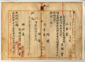 六 殖産局長高田元治郎ノ内申ニヨリ台湾総督府農事試験場技師兼台湾総督府技師東郷実ヲ台湾総督府技師兼台湾総督府農事試験場技師ニ任シ民政部殖産局農務課兼移民課勤務ヲ命ス
