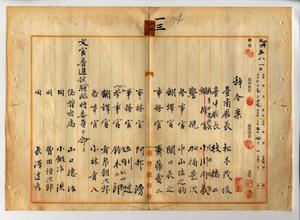 一三 台湾総督府文官普通試験委員長中川友次郎ノ稟申ニヨリ台南庁長松本茂俊・台中庁長枝徳二・高等女学校長尾田信直・警視加福豊次・参事官中山佐之助・翻訳官関口長之・事務官斎藤愛二・事務官阿部滂・事務官立川連・事務官金田政四郎・参事官鈴木三郎・翻訳官有泉朝次郎・参事官小林音八ニ文官普通試験臨時委員ヲ命シ、総督府属山口徳治・総督府属小鍛治洪・総督府属曽田恒次郎・総督府属長沢達彦・総督府属前川泉・総督府属森永信光・台南長属牧野斌・台中庁属松山松次郎ニ文官普通試験臨時書記ヲ命ス
