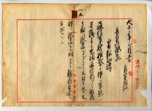 一五 通信局長角源泉ヨリ事務官藤井恭敬ヲ南清ニ於ケル我郵便局ニ関スル事務打合ノ旁船便関係ニ就キ実地ニ視察セシムル為メ南清ニ派遣致シ度トノ内申ニ対シテ民政長官ヨリ先頃通信局ヨリ南清方面ヘ派遣シタルコトアリ又目下夫々支那ヘ派遣セル向モアリタルヲ以テ暫時見合スベシトノ返電ニ依リ藤井事務官ノ南清出張ハ認メ難キニヨリ廃案トスルノ件